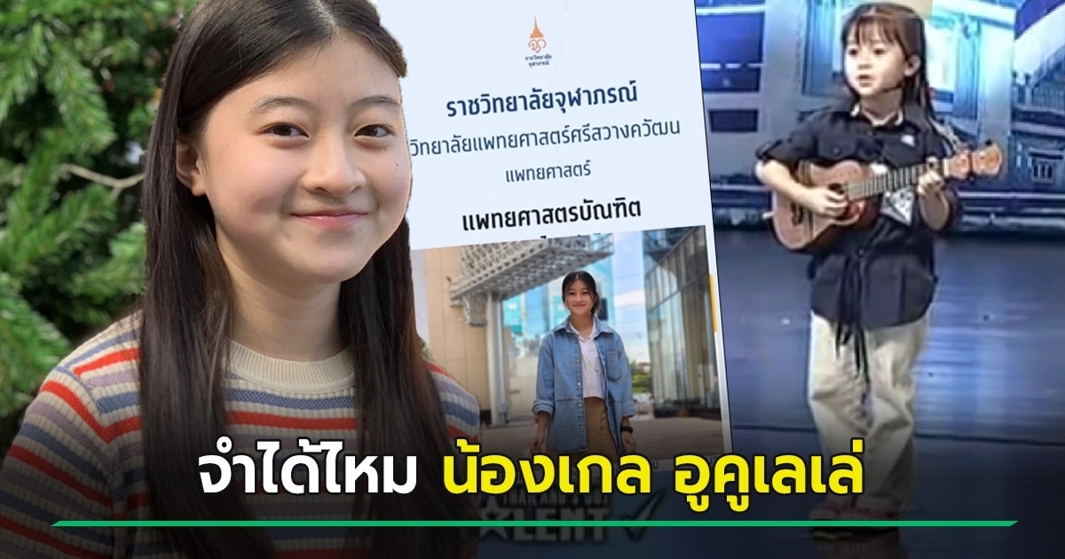 จำกันได้หรือเปล่า น้องเกล อูคูเลเล่ รายการ Thailand’s got talents จากความคิวต์สุด ๆ จนเป็นไวรัล วันนี้สอบติดคณะแพทย์ ราชวิทยาลัยจุฬาภรณ์ น้องเก่งมาก ๆ