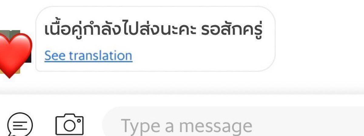 ทวิตเตอร์ @nchdaq ได้เผยภาพตอนสั่งอาหารผ่านแอปฯ หนึ่ง แล้วอยู่ ๆ ไรเดอร์ก็ส่งข้อความมาว่า เนื้อคู่กำลังไปส่งนะคะ รอสักครู่ งานนี้ถึงกับไปไม่เป็นเลยทีเดียว เนื้อคู่ที่ว่าคือคนรักในอนาคตรึเปล่านะ ต่อมาไรเดอร์มาพร้อมกับเนื้อคู่ ปรากฏตัวให้เห็นถึงที่บ้าน เนื้อคู่ที่เห็นนั้นเป็นเนื้อ 2 ชิ้นเอามาประกบเป็นรูปหัวใจนั่นเอง ไอเดียเก๋ในช่วงวันวาเลนไทน์จนเป็นกระแสไวรัลดังบนโลกออนไลน์