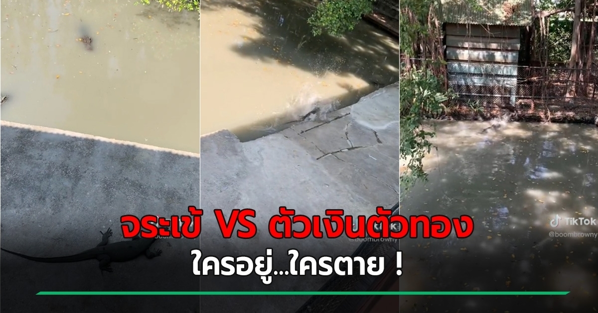 ระหว่างทาง เจ้าของคลิปเจอตัวเงินตัวทองตัวใหญ่ เกาะติดแหง็กอยู่ที่ริมรั้วกั้นบนทางเดิน ตัวคนก็สนใจอยู่สักพัก ก่อนที่จะกลับไปสนใจจระเข้ที่อยู่ด้านล่าง ทันใดนั้นเอง หูได้ยินเสียงวัตถุหนัก ๆ ตกลงไปเบื้องล่าง ที่แท้ ตัวเงินตัวทองที่เกาะรั้วเมื่อครู่ ตกลงไปในลานด้านล่างซึ่งเป็นบ่อจระเข้เรียบร้อย