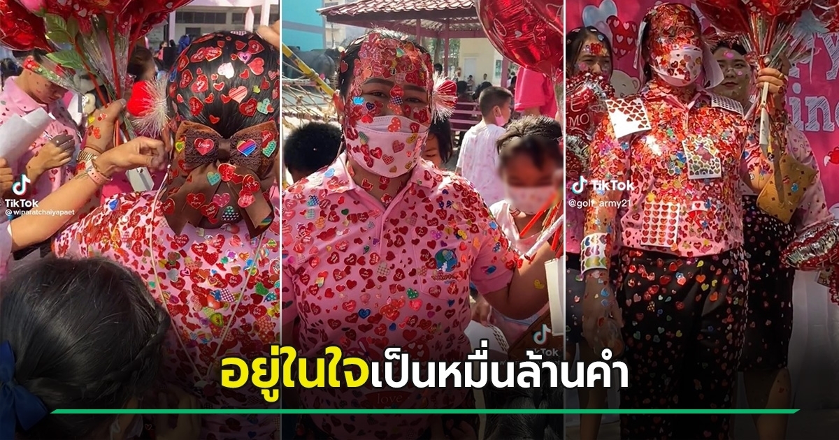 มงไม่ลงจะงงมาก นักเรียนรุมแปะสติ๊กเกอร์หัวใจให้คุณครู โซเชียลแห่แซว วันวาเลนไทน์หรืองานปิดทองฝังลูกนิมิต ตอนติดไม่ว่าแต่ตอนแกะ..ช่วยด้วย !!