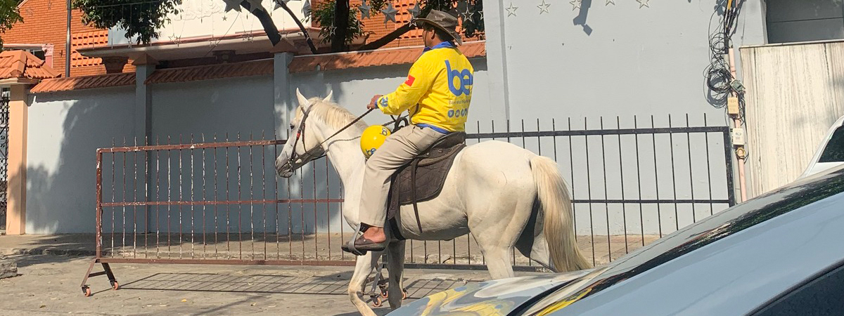 ไรเดอร์ปรับกลยุทธ์ ในช่วงน้ำมันแพง ใช้ม้าแทนมอเตอร์ไซค์ ส่งของให้ลูกค้าถึงที่
