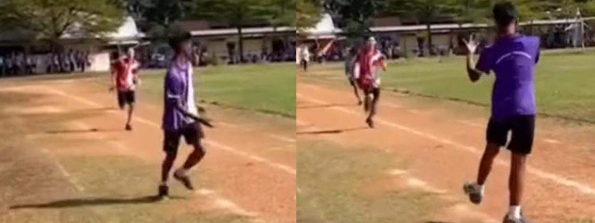 ผู้ใช้ TikTok @kittichaiyasan ได้เผยคลิปนาทีนักกีฬาวิ่งแข่งกีฬาสี ในขณะที่คนนำใกล้จะเข้าเส้นชัย นำชัยชนะมาให้สีตัวเองแล้วแท้ ๆ แต่ดันนึกอยากเย้ยหยัน โบกมือเรียกคู่แข่งให้วิ่งตามตัวเองให้ทัน มั่นใจจนพลาดท่าล้มหงายหลัง จนคนที่วิ่งตามหลังเข้าเส้นชัยไปโดยปริยาย งานนี้อายแทบมุดดินหนี อดนึกถึงนิทานเรื่องกระต่ายกับเต่าไม่ได้จริง ๆ