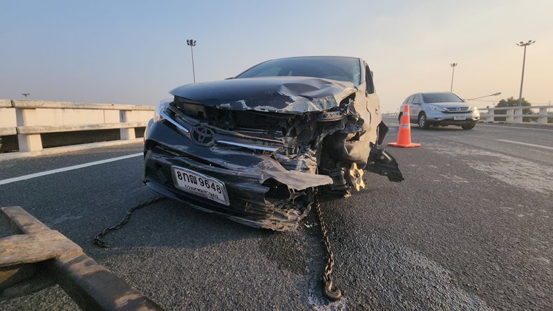 เปิดภาพรถยนต์คันเกิดเหตุ เสียหายหนัก ขนาดรถยังขนาดนี้ มอเตอร์ไซค์ขนาดไหน