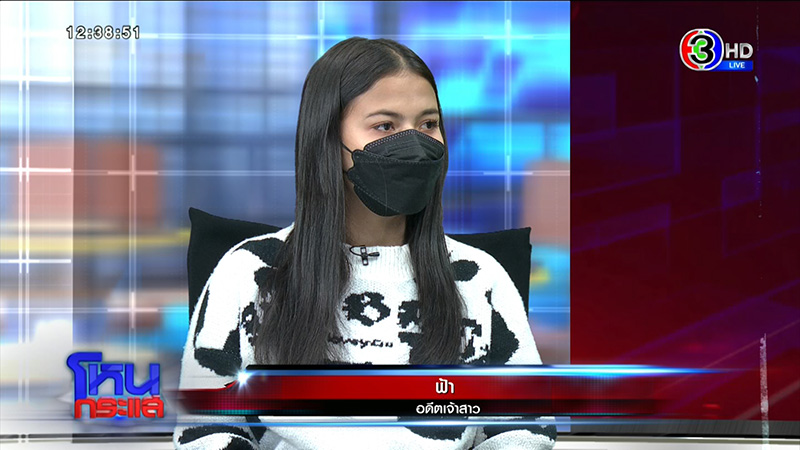 ฟ้า : หนูขอออกรายการเดียว เพราะไม่อยากพูดซ้ำ ๆ ตอกย้ำตัวเอง หนูยอมรับว่าหนูผิดจริง ๆ ที่ไปเชื่อใจเขา แต่ความผิดของหนูไม่ได้ทำให้ใครเสียหาย หนูไม่อยากให้ใครมาซ้ำเติมหนู (ร้องไห้)