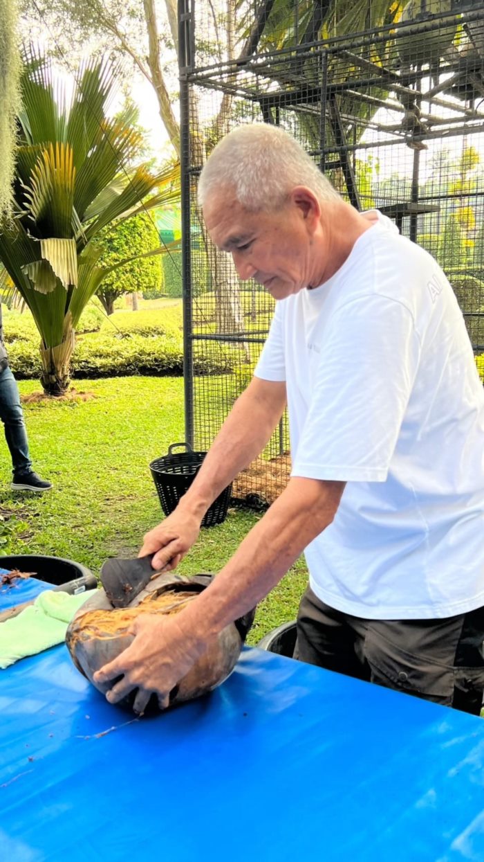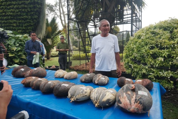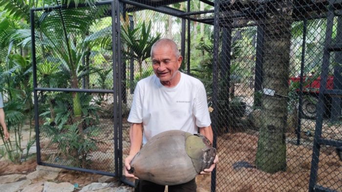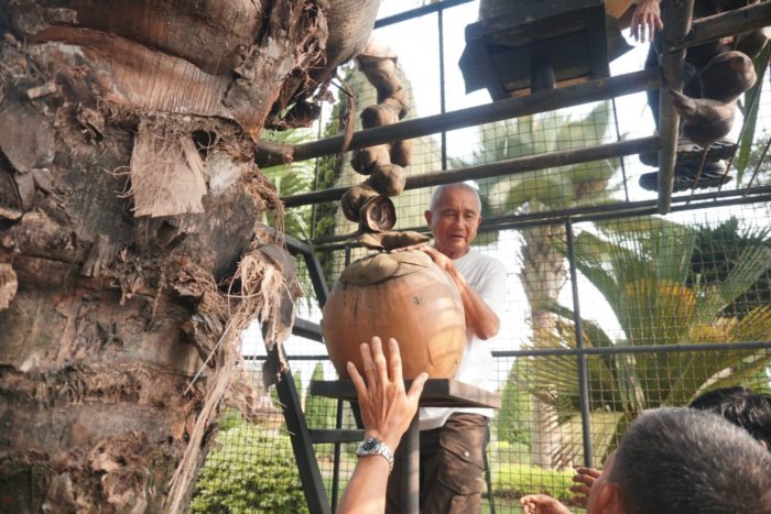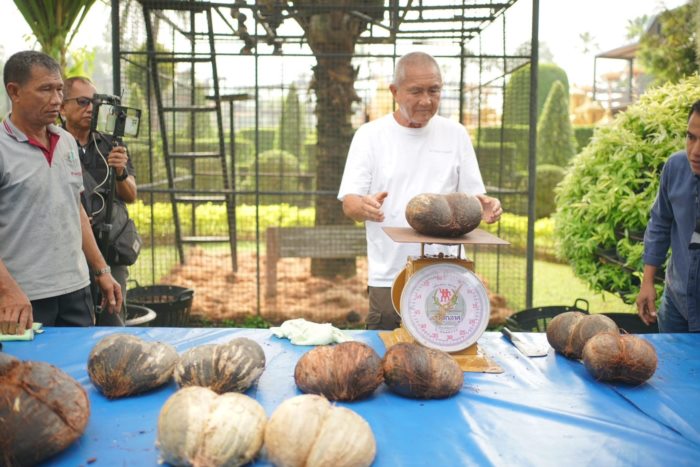 นายกัมพล ตันสัจจา ประธานสวนนงนุชพัทยา กล่าวว่า มะพร้าวทะเลหรือมะพร้าวแฝด จัดเป็นปาล์มชนิดหนึ่ง มีถิ่นกำเนิดในหมู่เกาะซีเซลล์ ย่านมหาสมุทรอินเดีย มีเมล็ดขนาดใหญ่ที่สุดในบรรดาเมล็ดปาล์ม ส่วนมะพร้าวทะเลที่ปอกให้ชมในวันนี้ ทางเราจะนำไปปลูก 2 ต้น เพื่อขยายพันธุ์พืช และการอนุรักษ์ไม้หายากต่อไป