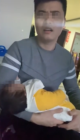ภรรยาถ่ายคลิปวิดีโอบันทึกเหตุการณ์ แสดงให้เห็นว่า สามีของเธอมีสีหน้าและท่าทางจริงจังมาก เขากล่าวตำหนิเธอว่า "ทำไมเธอถึงอุ้มลูกหมุนเป็นเข็มนาฬิกาเลยล่ะ ทำไมเธอไม่อยู่เฉย ๆ"
