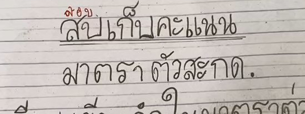 เมื่อนักเรียนทำข้อสอบ เขียนคําในมาตราตัวสะกด หลังจากที่ครูตรวจคำตอบ เห็นแล้วถึงกับกลั้นขำไม่อยู่