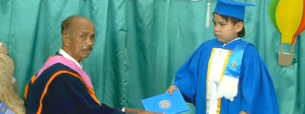 ผู้ใช้ TikTok @fahfah2673 ได้เผยภาพหนูน้อยระดับชั้นอนุบาล 3 กำลังขึ้นรับใบประกาศนียบัตรเรียนจบ และในระหว่างที่ขึ้นรับนั้น ต้องหันหน้าไปถ่ายรูปที่ระลึก แต่ดูเหมือนว่าหนูน้อยคนนี้จะลืมขั้นตอนดังกล่าว ทางด้าน ผอ. ของโรงเรียนคอยบอกให้น้องหันหน้าเข้าหากล้อง น้องดันโพสท่าเก๊กหล่อแทน สร้างตำนานให้กับงานรับใบประกาศนียบัตรเรียนจบ จนเป็นไวรัลดังบนโลกออนไลน์ในตอนนี้