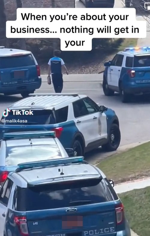 พนักงานหนุ่มใจกล้า เจอตำรวจติดอาวุธ ปิดล้อมเหตุร้ายระทึก สู้ไม่ถอย เดินดุ่ยส่งของ แถมไม่ลืมถ่ายรูปยืนยัน