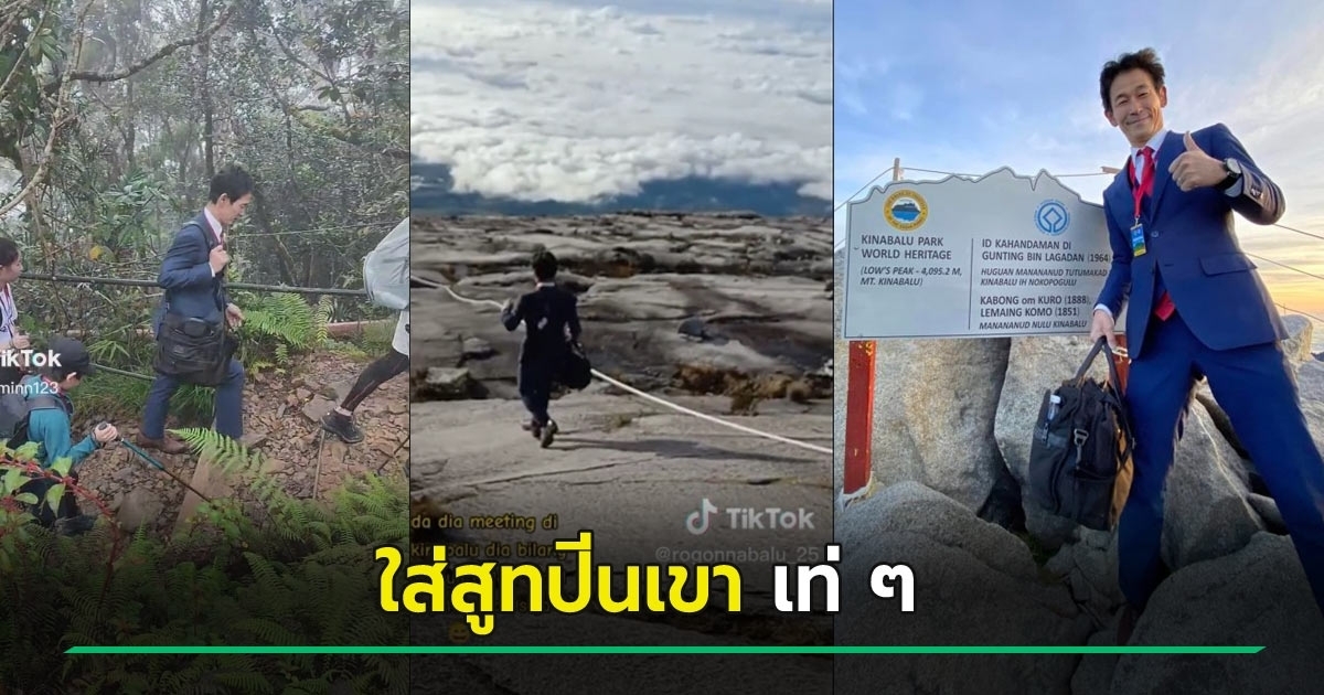 หนุ่มญี่ปุ่นทำฮือฮา ใส่ชุดสูท-รองเท้าหนัง ปีนเขาคินาบาลู เพื่อพิสูจน์ความแข็งแกร่งของชุดสูท เหมาะทุกสภาพอากาศ