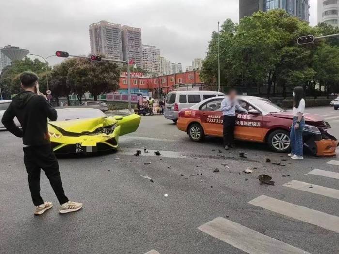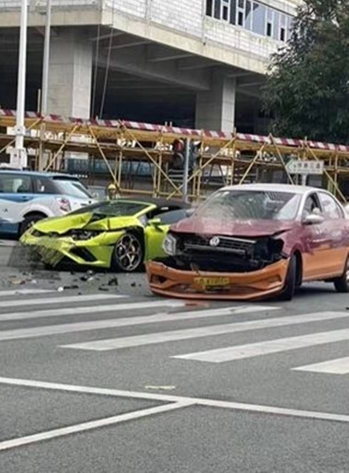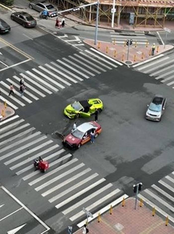 พุ่งชนกับรถสปอร์ตหรูแลมโบกินี่สีเหลืองสด