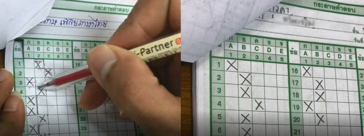 ผู้ใช้ TikTok @jara_28 ได้ภาพตอนตรวจข้อสอบปรนัยวิชาภาษาไทย เอากระดาษเฉลยเทียบกับของนักเรียนคนแรก กากบาทถูกทุกข้อ ได้ 20 คะแนนเต็ม ครูเห็นแล้วชื่นใจทันที แต่พอเปิดพลิกหน้าไปตรวจของคนต่อไป พบนักเรียนผู้ไม่มีดวงในการสอบ เพราะหลบข้อถูกแบบทุกข้อ ไม่มีข้อไหนที่ถูกเลย เจอแบบนี้ครูจะปรับอารมณ์ได้ยังไงไหว กระดาษคำตอบนักเรียนทำร้ายจิตใจครูมาก