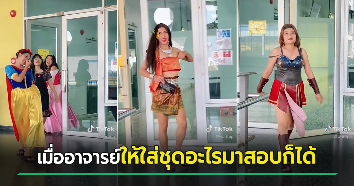 กลายเป็นสีสันคลายเครียดในวันสอบได้ดีจริง ๆ เมื่อวันที่ 1 เมษายน 2566 ผู้ใช้ TikTok @waritpp โพสต์คลิปบรรยากาศเพื่อน ๆ นิสิต ปี 4 มหาวิทยาลัยบูรพา บางแสน จ.ชลบุรี แต่งตัวจัดเต็มเพื่อไปสอบหลังอาจารย์บอกว่า ให้ใส่ชุดอะไรมาสอบก็ได้ ยกเว้น "ชุดนิสิต"