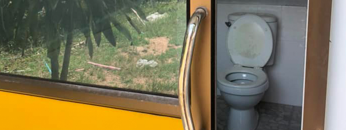 เฟซบุ๊ก Boom Chanliya Kanjaphuwanon ได้เผยภาพห้องน้ำที่วัดแห่งหนึ่ง ระหว่างที่กำลังทำบุญ ก็เกิดอาการปวดท้องหนักขึ้นมา จึงรีบวิ่งไปเข้าห้องน้ำ แต่ดันมาสะดุดตรงประตูห้องน้ำนี่แหละ ข้างล่างอย่างทึบ แต่ทำไมข้างบนเป็นกระจกใสไปได้ล่ะ ใครเข้าห้องน้ำได้คิดหนักแน่ ๆ ถ้าใครเดินผ่านคือเห็นหมด !!