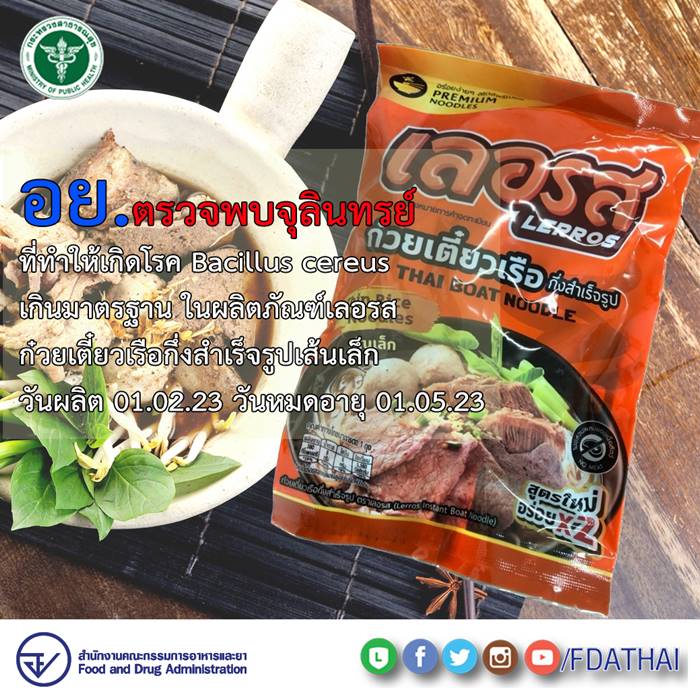 ก๋วยเตี๋ยวเรือกึ่งสำเร็จรูป เลอรส มีการตรวจพบจุลินทรีย์ Bacillus cereu