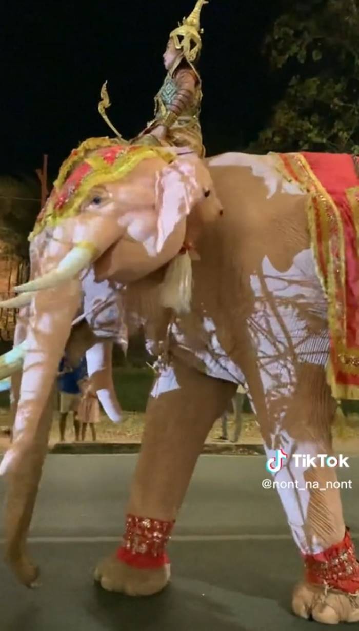 ทั้งนี้ ภายในคลิปจะเห็นว่า มีการนำช้างมาเดินขบวน แต่ช้างนี้ไม่ใช่ช้างธรรมดา แต่เป็นช้างเผือก สามเศียร เศียรทั้งสองข้างสามารถขยับตาได้ และช้างก็เดินไปข้างหน้า ประหนึ่งว่าพงศาวดารมีชีวิตจริง ทำให้เจ้าของคลิปเห็นแล้วรู้สึกเป็นบุญตา ส่วนชาวเน็ตที่เห็นคลิปก็แห่เข้ามาพิมพ์คำว่า สาธุ กันถ้วนหน้า บางคนก็ถามว่า ช้างเชือกนี้มี 3 หัวจริงไหม