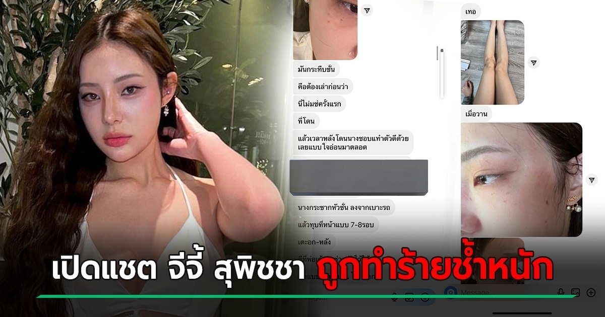 เพื่อนสนิทเปิดแชต จีจี้ สุพิชชา เน็ตไอดอลสาว ส่งรูปถูก นตท. ลูกชายบิ๊กทหาร ทำร้ายมาให้ บอกทั้งโดนกระทืบ กระชากหัว ทุบหน้า ด้านน้องสาวเผยพี่เคยโดนปืนจ่อหัวมาแล้ว