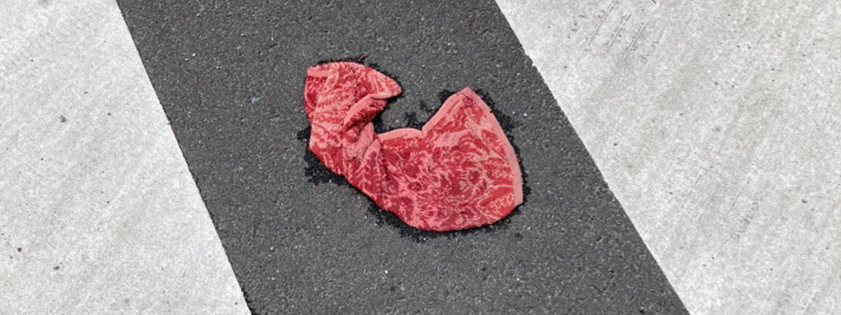 ทวิตเตอร์ @konkani_pet ได้เผยภาพตอนเดินข้ามทางม้าลายแห่งหนึ่ง ที่เห็นอะไรบางอย่างสีแดงอยู่ตรงพื้น แวบแรกแอบตกใจคิดว่ามีคนทำเนื้อชั้นดีตกพื้น ถ้าหากให้ลองมองใกล้ยิ่งกว่าเดิม ก็จะพบว่าสิ่งที่เห็นไม่ใช่เนื้อดิบ แต่มันคือผ้าเช็ดตัวต่างหาก เชื่อว่าใครเห็นภาพนี้ต้องรู้สึกหิวเนื้อแน่ ๆ