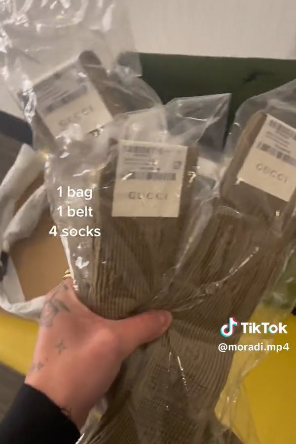 โดยวันที่ 17 เมษายน 2566 เว็บไซต์ The Daily Dot เผยว่า ต้นเรื่องเกิดจากคลิป TikTok ของสาวคนนี้ที่กลายมาเป็นไวรัลทะลุ 3.7 ล้านวิว ซึ่งเธอหอบถุงที่ระบุแบรนด์ Gucci ถุงใหญ่ ๆ 2 ใบ มาทำคลิปแกะของให้ดูกันแบบชัด ๆ ทีละชิ้น พร้อมระบุว่า นี่คือคลิปแกะกล่อง ของทุกอย่างที่ Gucci ให้เธอมาฟรี ๆ ในวันแรกของการทำงาน
