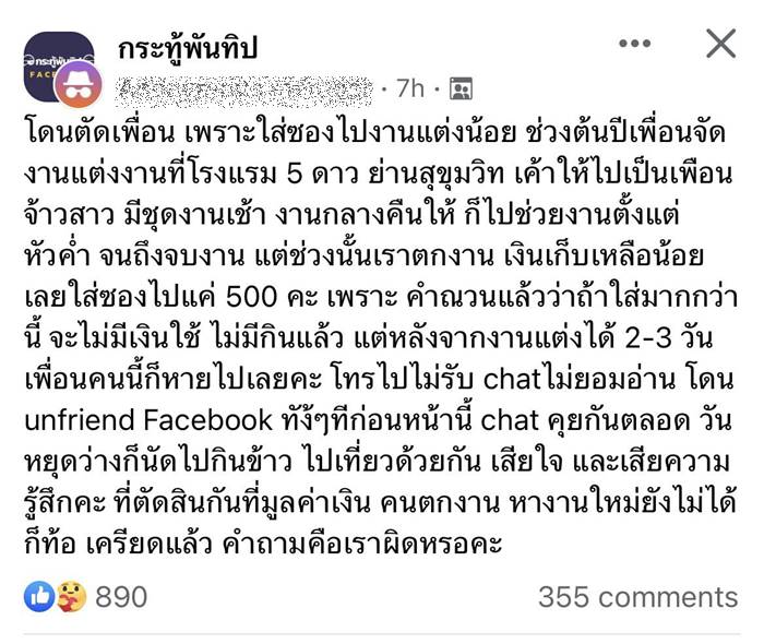 สุดท้ายถูกตัดความสัมพันธ์ เผยเหตุผลทำไมใส่ซองเท่านี้ ทำเอาชาวเน็ตเห็นใจ