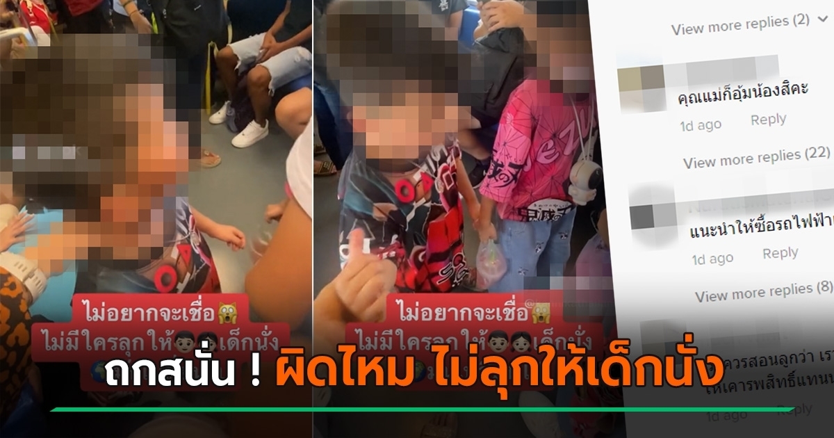 โซเชียลเสียงแตก เด็กยืนบนรถไฟฟ้า ควรลุกให้เด็กนั่งหรือไม่ หลังแม่เผยคลิปพาลูกขึ้นรถไฟฟ้า แต่ไม่มีใครลุกให้นั่ง