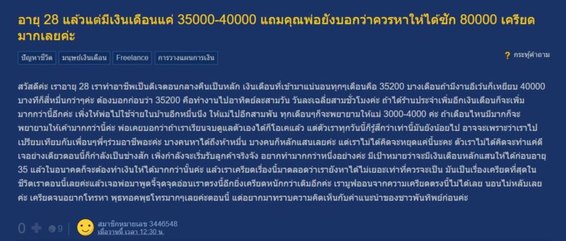กรณีสมาชิกรายหนึ่ง ตั้งกระทู้ปรึกษาว่า "อายุ 28 แล้วแต่มีเงินเดือนแค่