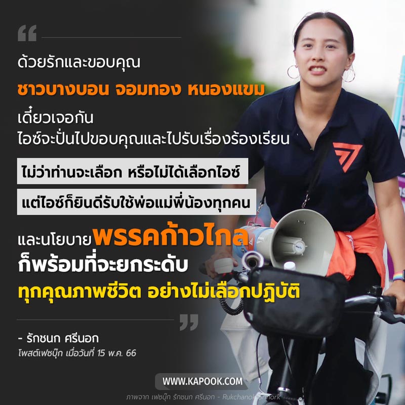 ประวัติ ไอซ์ รักชนก ผู้สมัคร ส.ส. พรรคก้าวไกล เขตบางบอน ม้ามืดคะแนนนำ ล้มแชมป์เก่า วัน อยู่บำรุง กับฉายาเซเลบคลับเฮ้าส์ ผู้สร้างไวรัล ปั่นจักรยานหาเสียง
