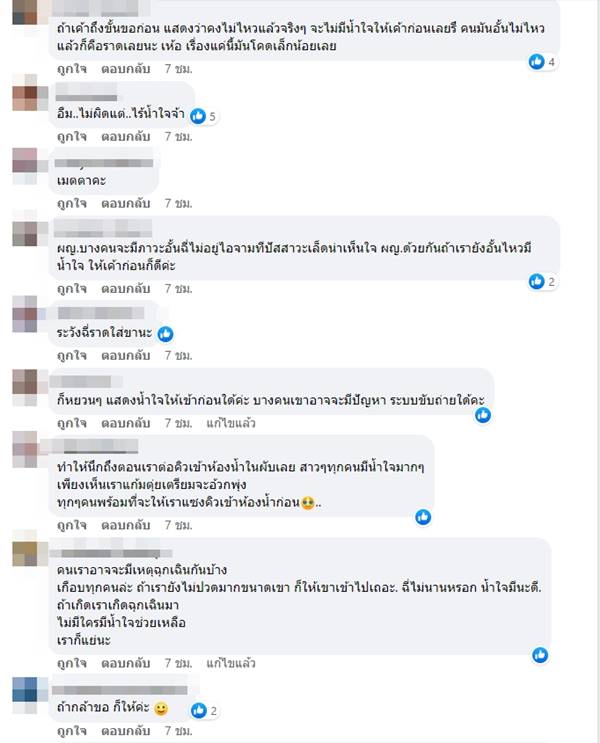 สาวตั้งกระทู้ถาม ถ้าไม่ให้คนที่ปวดฉี่มากจนจะราดแซงคิวเข้าห้องน้ำ เราผิดเหรอ ทำไมไม่เคารพสิทธิ์กันบ้าง โซเชียลถกแซ่ด บ้างมองไม่สมควรทุกคนปวดเหมือนกันหมด อีกฝั่งซัดไม่ผิด แต่ไร้น้ำใจ