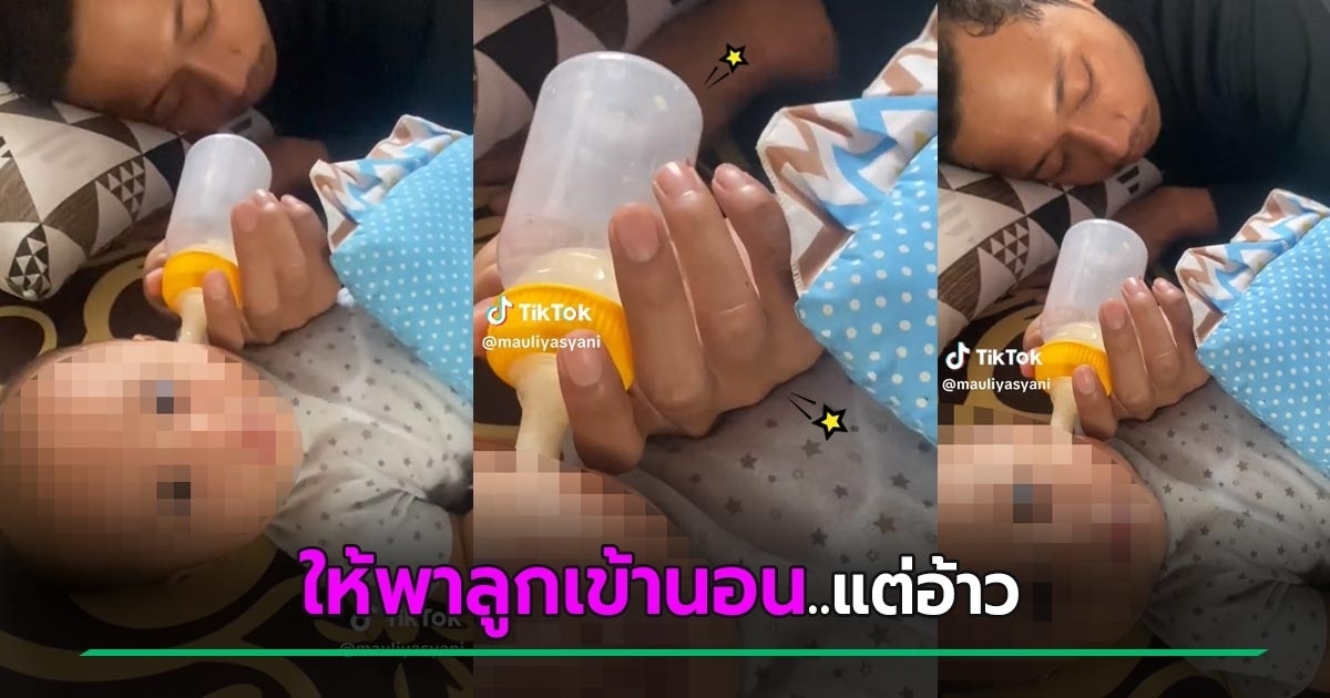 โดยจากรายงานของเว็บไซต์ เวิลด์ออฟบัซ เมื่อวันที่ 17 พฤษภาคม 2566 เผยคลิปที่กลายเป็นไวรัลทะลุ 2 ล้านวิวนี้ ถึงสภาพของพ่อลูกคู่หนึ่งที่ดูทรงแล้วคุณพ่อน่าจะนำขวดนมมาให้ลูกน้อยดูดเพื่อพาลูกเข้านอน แต่ผลที่ปรากฏคือนอกจากเขาจะกล่อมลูกนอนไม่สำเร็จแล้ว ตัวเองก็ยังหลับปุ๋ยไปซะอย่างนั้น ขวดนมที่ควรจะจ่อปากให้ลูกดูดกลับไปจิ้มที่หูลูกแทน