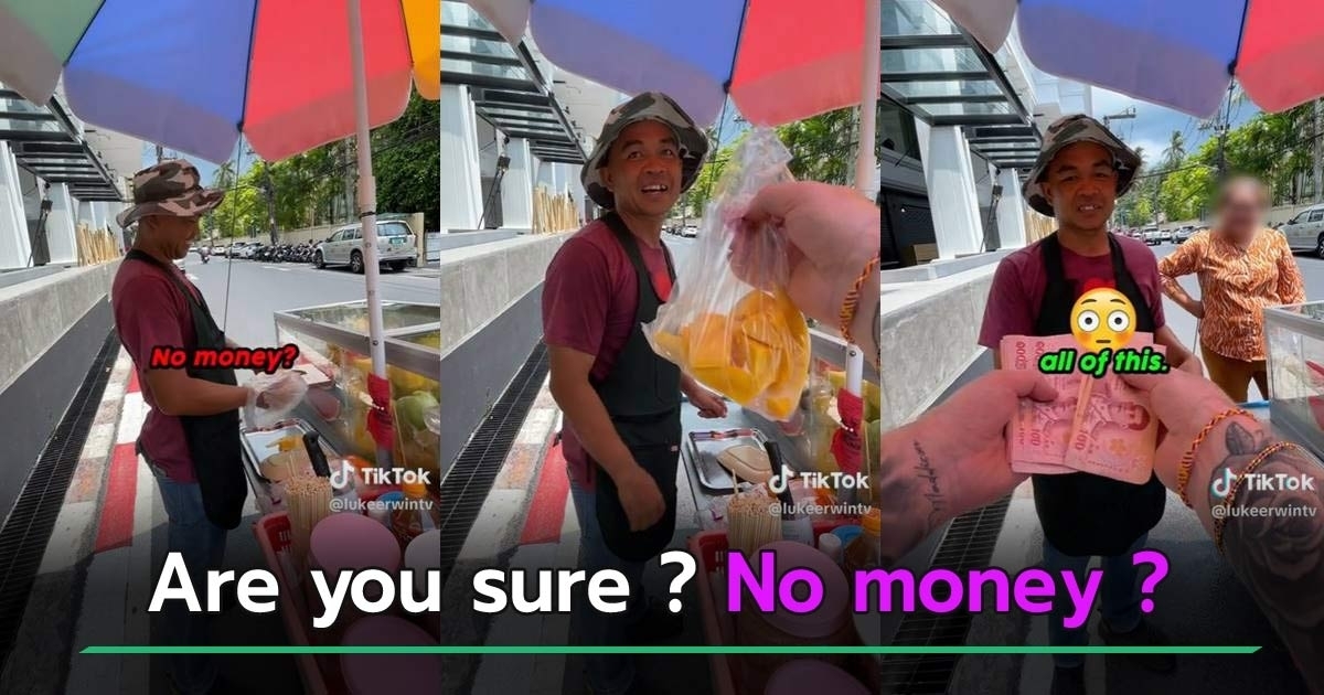 ฝรั่งทำคลิปทดสอบสังคมมาไทย เจอรถเข็นขายผลไม้ที่ภูเก็ต บอกหิวแต่ไม่มีเงิน เลยได้รับมะม่วงฟรี ก่อนขอตอบแทนความมีน้ำใจให้แบบนี้... จบแฮปปี้สุด