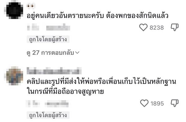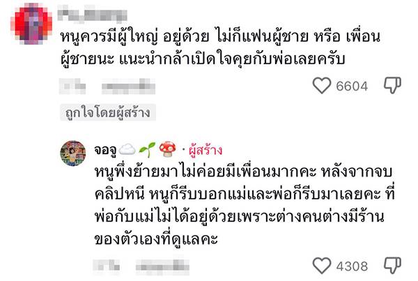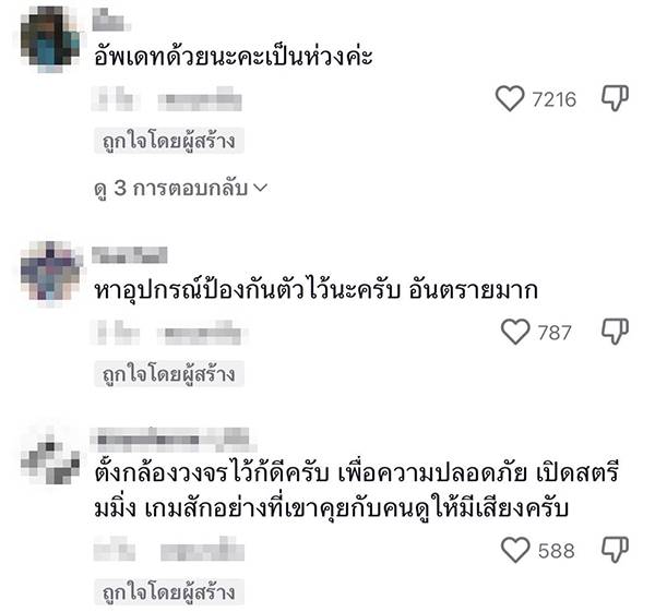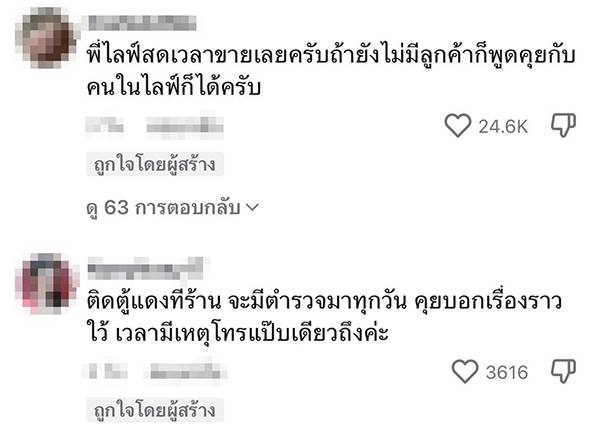 ด้านชาวเน็ตเข้ามาคอมเมนต์เป็นห่วงเธอจำนวนมาก ทั้งยังแนะนำว่าถ้าไม่มีลูกค้าให้ไลฟ์ จะได้มีคนช่วยดู หรือไม่ก็ลองติดตู้แดง จะมีตำรวจแวะมาเช็กทุกวัน และช่วยเป็นหูเป็นตากันได้