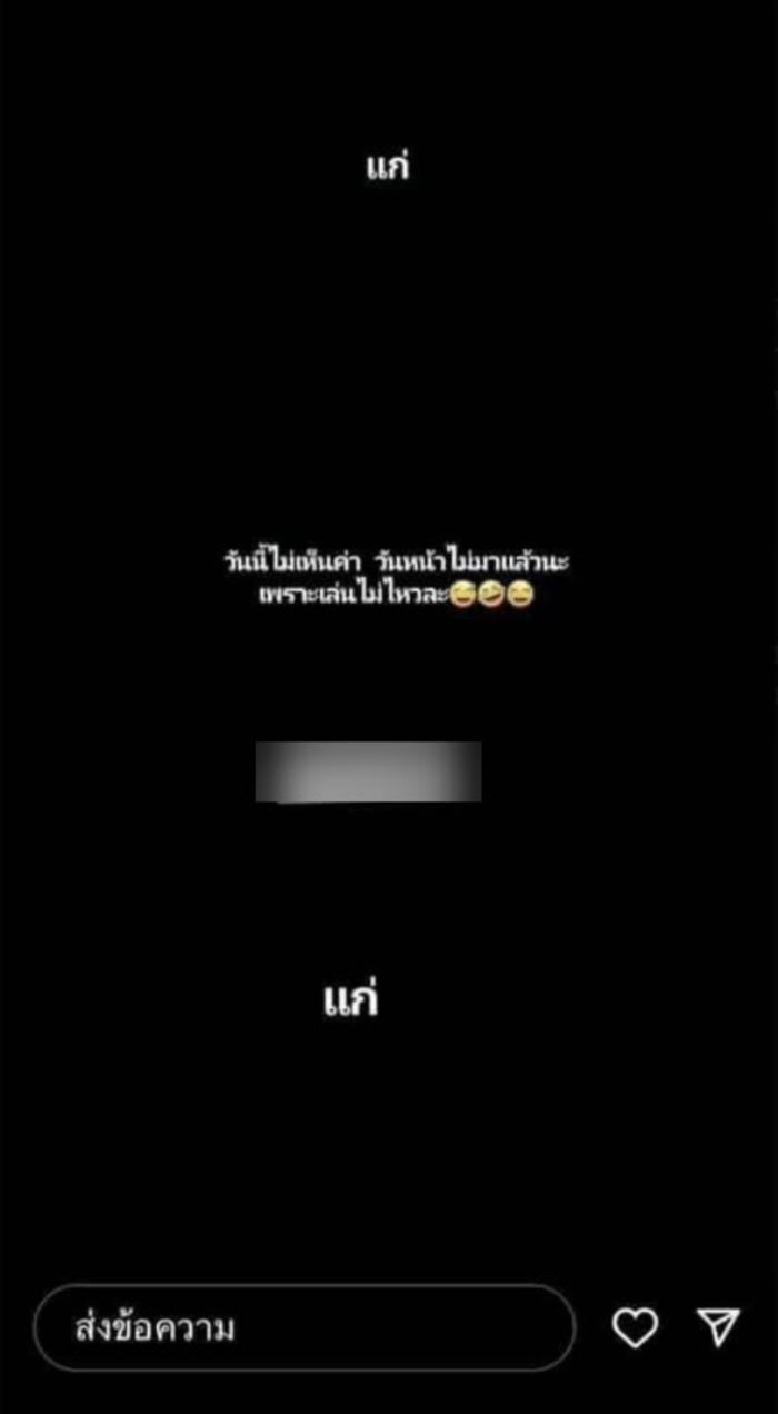 - แก่ วันนี้ไม่เห็นค่า วันหน้าไม่มาแล้วนะ เพราะเล่นไม่ไหวละ แก่