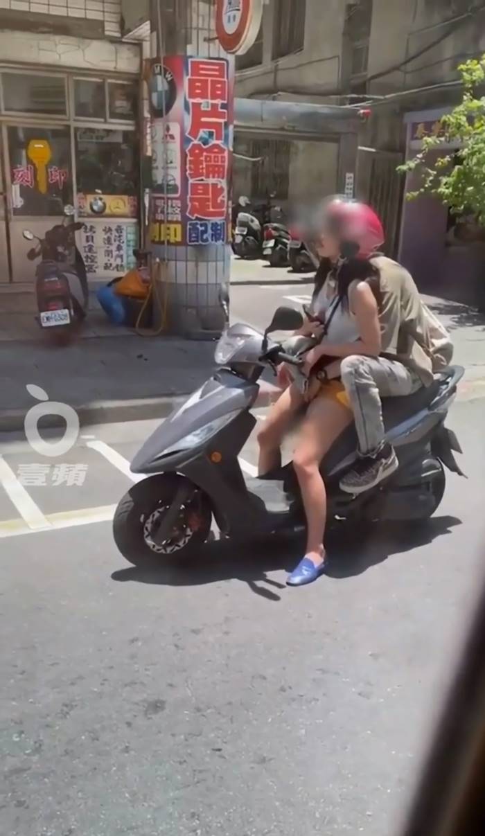 จากคลิปสั้น ๆ ที่ถูกนำมาโพสต์ลงเฟซบุ๊กกลุ่ม 爆廢公社 พบว่าฝ่ายหญิงนั้นสวมหมวกกันน็อกแบบครึ่งใบ และยังสวมเสื้อกล้ามตัวบางกับกางเกงขาสั้น ลักษณะการจอดรถเหมือนกำลังหยุดรอสัญญาณไฟจราจร แต่จู่ ๆ เธอกลับมีท่าทางการแสดงออกแปลก ๆ ทั้งหลับตาและเงยหน้าขึ้น