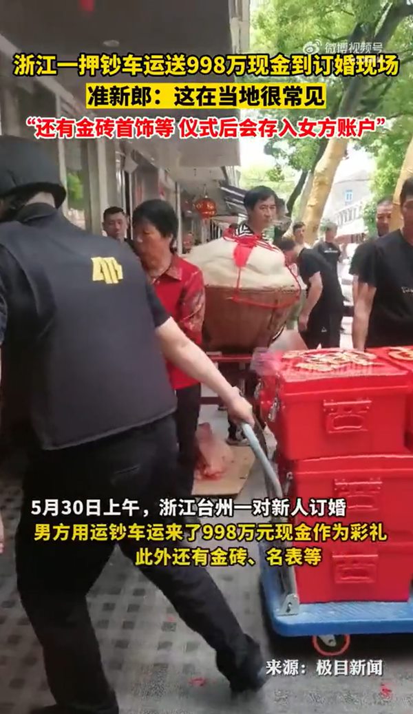 รายงานจาก CTWANT วันที่ 31 พฤษภาคม 2566 เผยว่า ภาพของรถขนเงินสีดำ พร้อมด้วยเงินสดกองโตเหมือนภูเขา กับของมีค่าอื่น ๆ เช่น ทองคำแท่ง นาฬิกาหรู และทรัพย์สินมีค่าอื่น ๆ เป็นสินสอดของหมั้นที่ นายหยาน ว่าที่เจ้าบ่าววัย 30 ปี มอบให้แก่แฟนสาวของเขา ในงานหมั้นซึ่งจัดขึ้นที่เมืองไท่โจว มณฑลเจ้อเจียง ประเทศจีน โดยสินสอดของหมั้นทั้งหมดนี้คิดเป็นมูลค่าร่วม 9.98 ล้านหยวน หรือกว่า 48 ล้านบาท