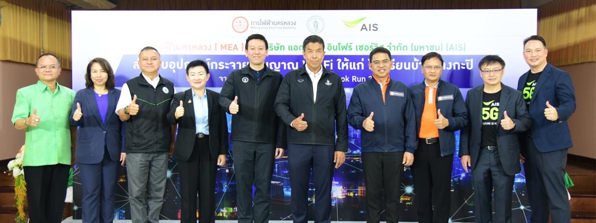 MEA ร่วมกับ กทม. และ AIS ส่งมอบอุปกรณ์อินเตอร์เนตไร้สาย (Wi-Fi) ให้แก่โรงเรียนบ้านบางกะปิ จากการระดมทุนในกิจกรรม BETTER BANGKOK RUN 2023 : วิ่งเพื่อกรุงเทพที่ดีกว่า