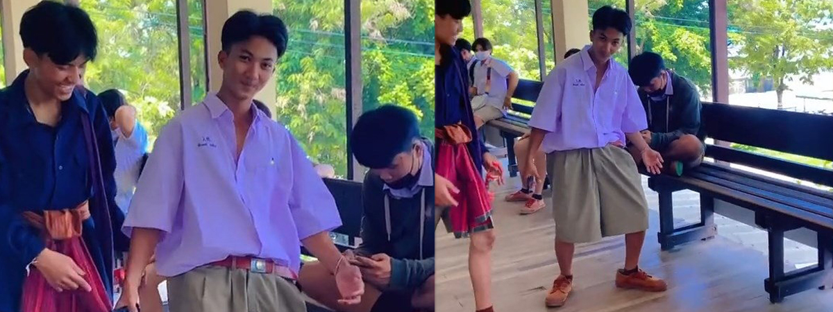 ผู้ใช้ TikTok @state_12 ได้เผยภาพสุดฮา ด้วยความที่นักเรียนคนหนึ่ง เห็นเพื่อนซื้อชุดนักเรียนที่ดูตัวใหญ่กว่าตัวเอง ไม่เว้นแม้กระทั่งรองเท้า จากนักเรียนไทยกลายเป็นแรปเปอร์ทันที ผลของการซื้อแบบไม่ดูไซซ์ตัวเอง มันก็จะดูแปลก ๆ แบบนี้นี่แหละ จนชาวเน็ตพากันคอมเมนต์แซวว่า ซื้อไว้เผื่อตัวเองโต