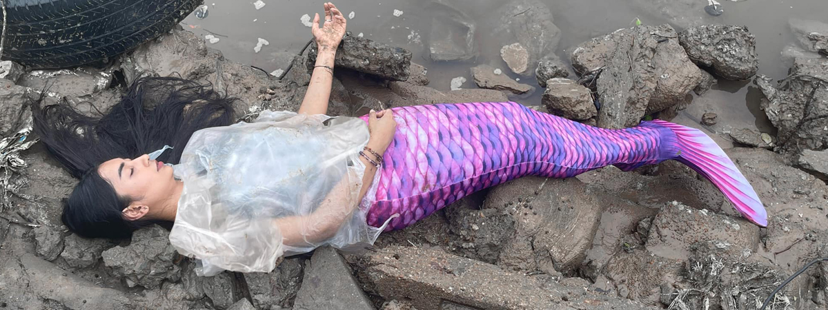 เพราะภาพนางเงือกเกยตื้นชุดนี้ มีที่มาจากเพจ อุทยานแห่งชาติอ่าวพังงา เผยให้เห็นสภาพนางเงือกนอนไม่ได้สติโดยมีถุงพลาสติกพันธนาการร่างกายอยู่ และใช่แล้ว นี่คือตัวแทนของทั้งมนุษย์และสัตว์ที่ได้รับผลกระทบจากพลาสติกนั่นเอง ทางอุทยานฯ จึงขอรณรงค์ให้ทุกคนลดหรืองดการใช้ถุงพลาสติก เพราะที่ผ่านมามีสิ่งมีชีวิตมากมายที่ต้องบาดเจ็บและล้มตายจากขยะพลาสติกเหล่านี้