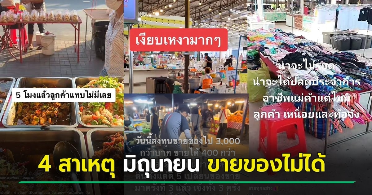 อย่างไรก็ตาม หลายคนได้มาร่วมวิเคราะห์ถึงสาเหตุถที่ทำให้ร้านค้าต่าง ๆ โดยเฉพาะตลาดนัด ปัจจุบันเงียบเหงาซบเซา จนแทบไม่มีคนเดิน โดยหลัก ๆ รวมกัน 3 สาเหตุ ดังนี้