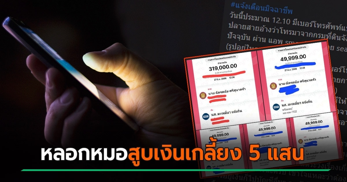 หมอหนุ่มโพสต์เตือนภัย แก๊งคอลเซ็นเตอร์หลอกโหลดแอปฯ กรมที่ดินปลอม เนียนขอข้อมูลบัตร รหัสความปลอดภัย แถมให้สแกนใบหน้าโอนเงิน สูบเงินเกลี้ยง 5 แสน