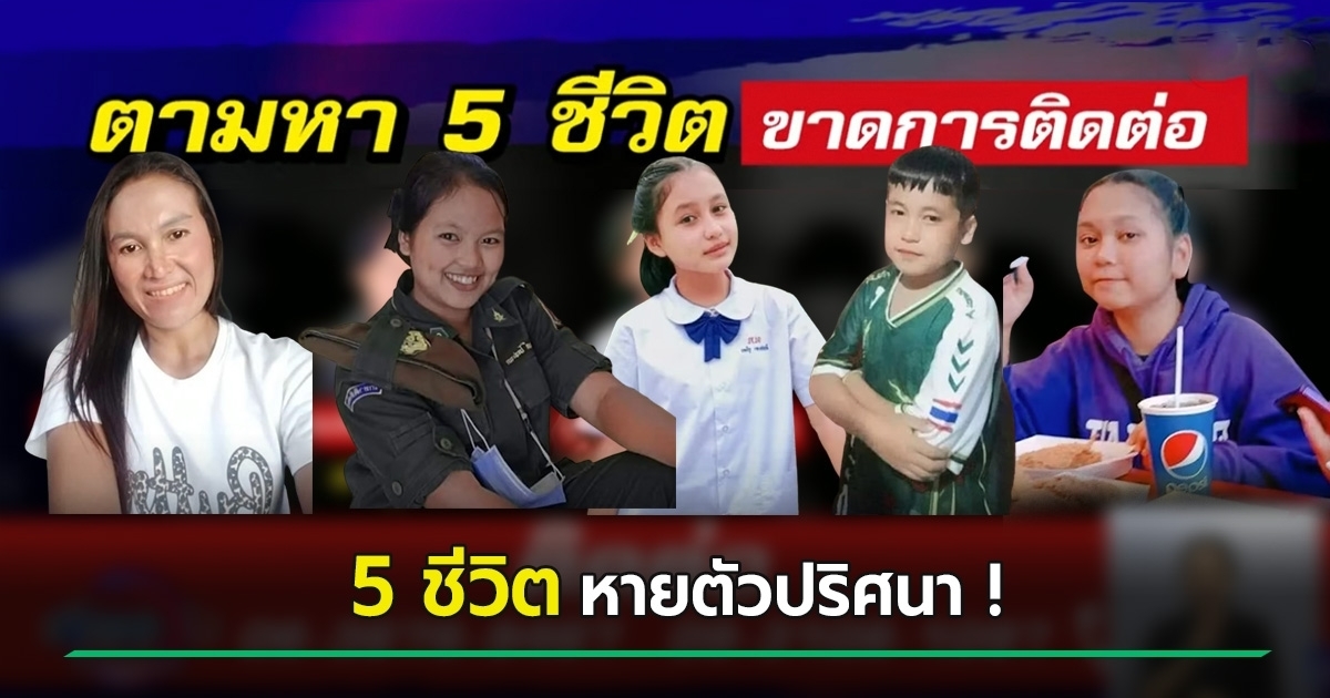 ทั้งนี้ หากใครมีเบาะแสสามารถแจ้งไปที่ น.ส.ฝน ญาติของทั้ง 5 คนได้ที่เบอร์โทร. 0636769467 หรือหมายเลข 0931081097