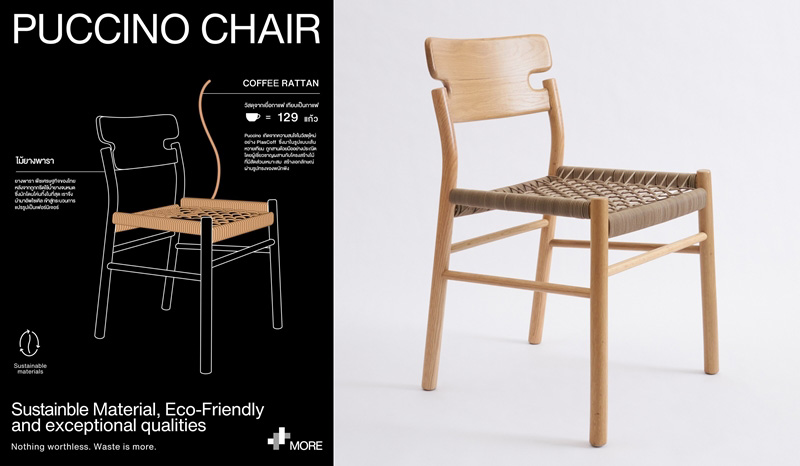 อย่างการเปลี่ยนเยื่อกาแฟที่เหลือจากการคั่ว ที่มีไม่น้อยกว่า 20 ตันต่อปี ซึ่งโดยปกติแล้วจะกำจัดด้วยการฝังกลบ แต่ปัญหาคือทำให้ดินมีความเป็นกรดเพาะปลูกพืชยาก ทีมนักวิจัยโครงการ MORE เลยนำไปผสมกับขยะพลาสติกชีวภาพและขยะพลาสติกทั่วไป เปลี่ยนเป็นวัสดุสำหรับถักทอที่คล้ายกับหวายธรรมชาติ แต่มีความยืดหยุ่นและทนทานกว่า ก่อนจะนำไปพัฒนาต่อยอดเป็นเฟอร์นิเจอร์ในบ้าน ซึ่งนอกจากจะช่วยลดขยะและเพิ่มคุณค่าให้กับของเหลือใช้แล้ว ยังเป็นการพัฒนาที่ยั่งยืนควบคู่ไปกับการดูแลสิ่งแวดล้อมอีกด้วย