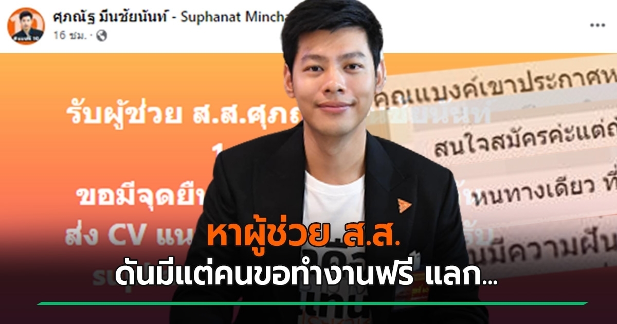 สส.แบงค์ ศุภณัฐ พรรคก้าวไกล ประกาศหาผู้ช่วย 1 ตำแหน่ง เงื่อนไขง่าย ๆ คือจุดยืนทางการเมืองตรงกัน แต่กลายเป็นมีคนขอทำงานให้ฟรี แลกอย่างเดียวที่เงินก็หาซื้อไม่ได้ !