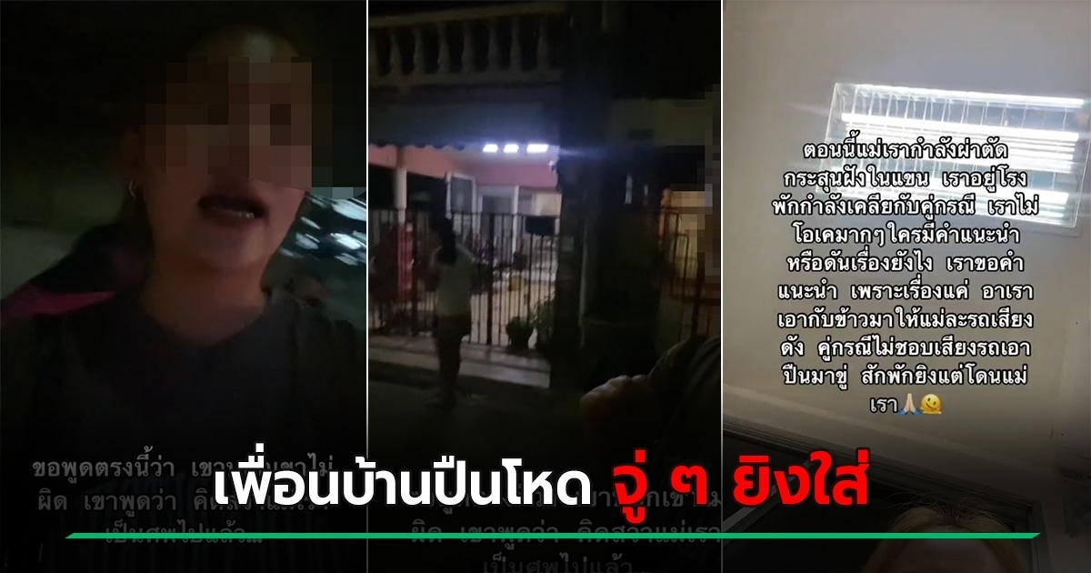 สาวโพสต์คลิประทึก แม่ถูกเพื่อนบ้านชักปืนยิงเจ็บ หลังออกไปเอากับข้าวหน้าบ้าน อีกฝ่ายอ้างตำรวจแค่ป้องกันตัว ถูกจับ 1 วันได้ประกันตัว