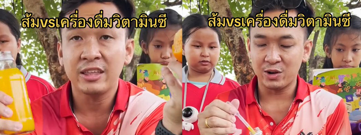 ครูวิทยาศาสตร์ทดลองหาวิตามินซีในเครื่องดื่ม และผลส้มสด ๆ แบบไหนจะมีวิตามินซีมากกว่ากัน