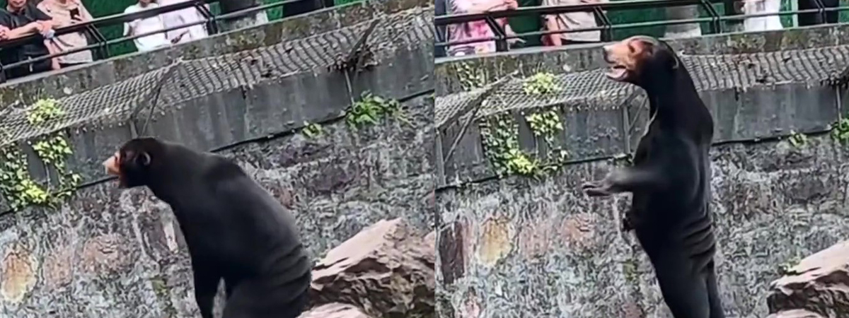 นักท่องเที่ยวพากันตะลึง เห็นหมีในสวนสัตว์โชว์ยืน 2 ขา ก่อนเห็นบางอย่างผิดปกติ