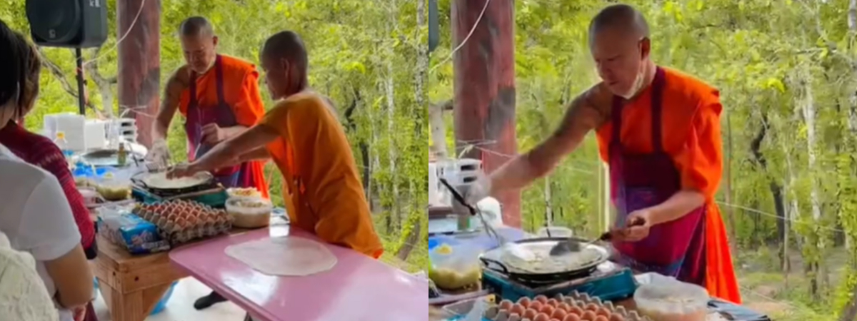 ผู้ใช้ TikTok @3sky_ ได้เผยภาพตอนไปทำบุญที่วัดแห่งหนึ่ง หลังจากที่ทำบุญเสร็จแล้ว ตอนแรกก็เอะใจว่าญาติโยมหายไปไหนกันหมด ก่อนที่จะเห็นพระกำลังทำโรตีอย่างคล่องแคล่ว ญาติโยมต่อแถวรอกินโรตีฝีมือพระ จนชาวเน็ตคอมเมนต์แซวว่า นี่คือการได้สัมผัสกับ รสพระทำ จริง ๆ