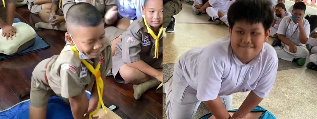 ผู้ใช้ TikTok @littlepraew12 ได้เผยภาพการสอนปฐมพยาบาลเบื้องต้น ให้กับเด็กนักเรียน เป็นการสอนให้ทำ CPR กับหุ่นจำลอง เพื่อฝึกการปั๊มหัวใจแบบเป็นจังหวะ ในระหว่างที่กำลังปั๊มหัวใจอยู่ เอวดันมาด้วยซะงั้น จนครูถึงกับขำลั่นโรงเรียนเลยทีเดียว