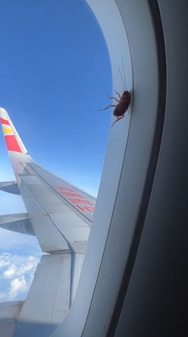 วันที่ 20 สิงหาคม 2566 เว็บไซต์ mustsharenews.com มีรายงานกรณีแปลกประหลาดของผู้โดยสารสาวรายหนึ่ง ที่สังเกตเห็นแมลงสาบเกาะอยู่นอกหน้าต่างเครื่องบิน แถมยังอึดเกินต้าน ไม่ถูกแรงลมซัดไปไหนแม้เครื่องบินจะเดินทางอยู่ในระดับความสูงหลายพันฟุต เป็นเวลานานไม่ต่ำกว่า 3 ชั่วโมง ซึ่งคลิปที่เธอถ่ายไว้นี้กลายมาเป็นไวรัลที่ถูกแชร์กันสนั่นทั้งใน Douyin และทวิตเตอร์ โดยมีคนดูแล้วไม่ต่ำกว่า 45 ล้านครั้ง