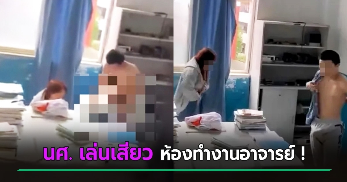 สองนักศึกษาวัยร้อนแรง แอบปูเตียงเล่นเซ็กส์ในห้องทำงานอาจารย์ เจอจับได้คาตา รีบใส่เสื้อผ้าอย่างไว ทั้งที่อารมณ์ยังค้าง