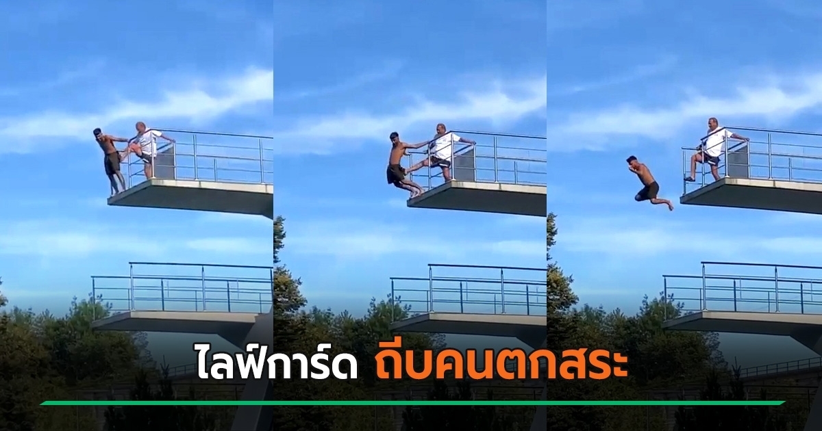 ชายนักท่องเที่ยวไม่กล้ากระโดดน้ำ เจอไลฟ์การ์ดขาโหดถีบร่วงสระ จากจุดกระโดดที่ความสูงถึง 10 เมตร